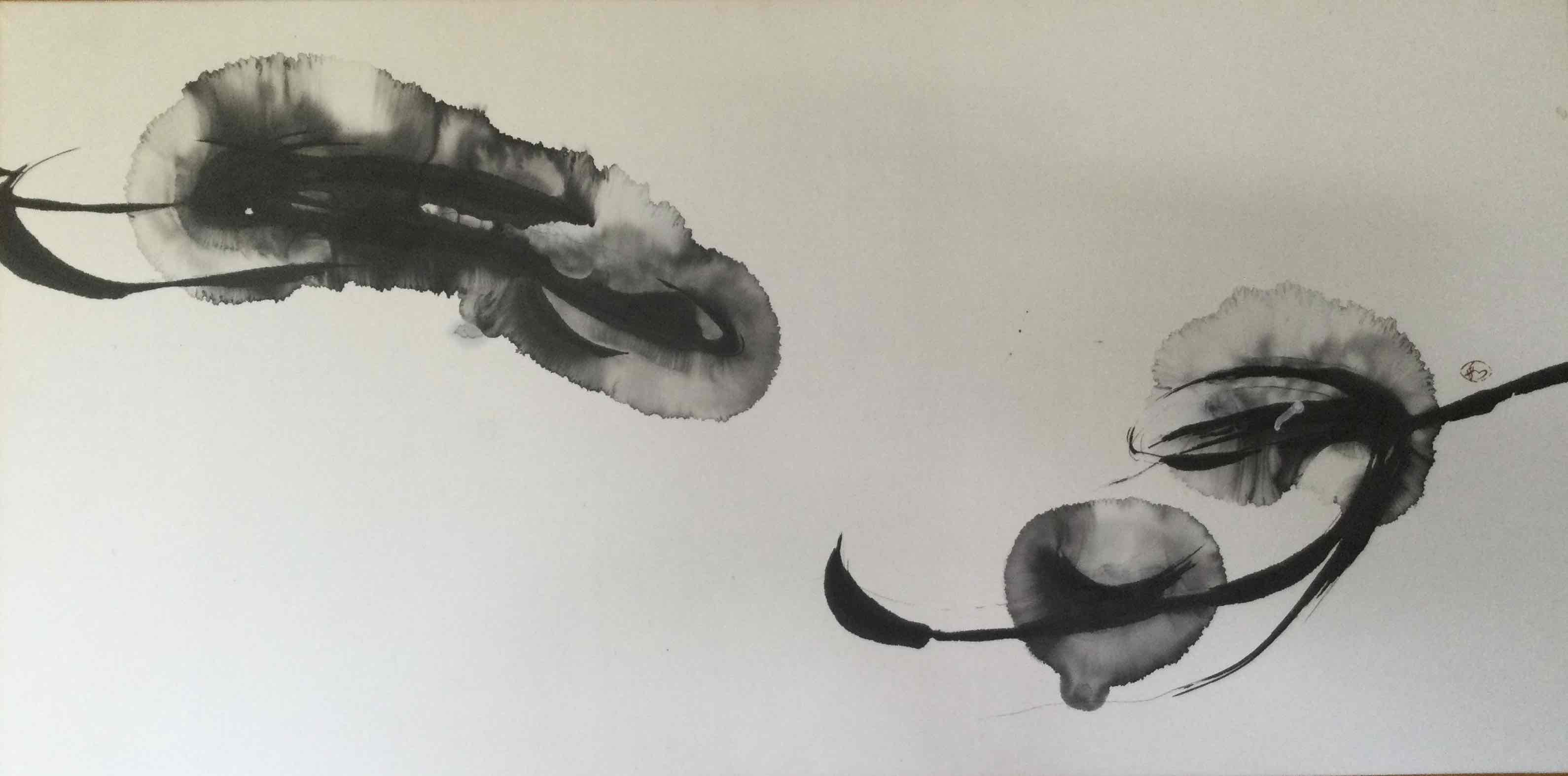 今は墨象という変幻自在な抽象的な墨の世界に